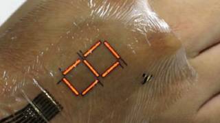 ويعكف فريق بحثي في جامعة طوكيو على تطوير طرق لعرض أرقام وحروف على طبقة الجلد الالكتروني لمساعدة الأطباء على معرفة البيانات الطبية للفرد.