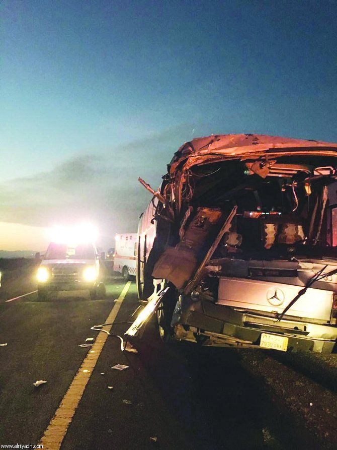 أسفر حادث مروري مروع بين حافلة معتمرين وشاحنة على طريق الهجرة «المدينة المنورة - مكة المكرمة» كيلو 123 عن إصابة عشرة آسيويين بينهم اثنان في وضع صحي خطر.