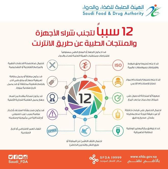 حذرت الهيئة العامة للغذاء والدواء السعودية من خلال بيان رسمي نشر على موقعها الالكتروني من القيام بشراء او تداول الاجهزة والمنتجات الطبية عن طريق الانترنت.