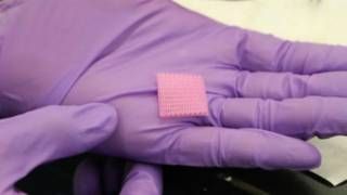 وقال المهندس دو نغوين "يمكنك أن تفكر في الأمر على نحو أنه نسيج لالتقاط ثاني أكسيد الكربون"، وأظهر لي قطعة وردية صغيرة من تلك المادة.