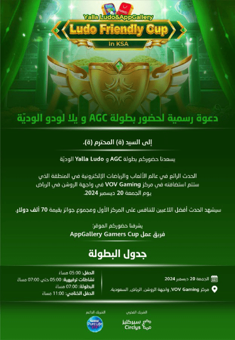 فعاليات AppGallery Gamers Cup (AGC) ويلا لودو الودية تنطلق اليوم رسمياً من مدينة الرياض