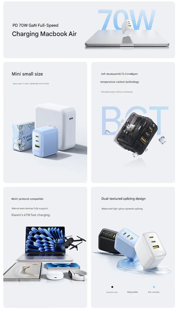 بيسوس تطلق شاحناً مدمجاً جديداً بقوة 70 واط وثلاثة منافذ