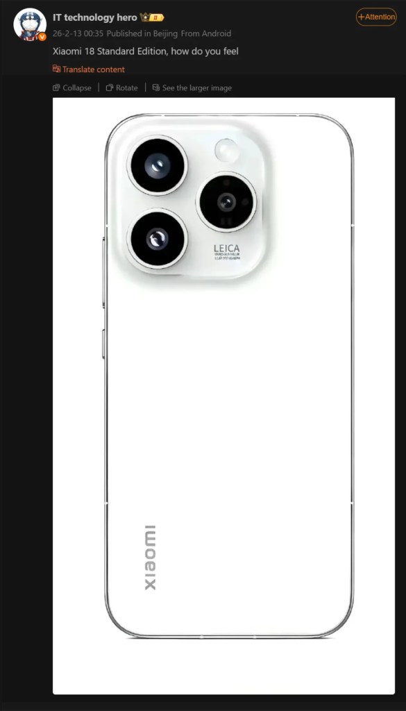 تصميم Xiaomi 18 الجديد يكشف عن نفسه مع وحدة كاميرا Leica مستوحاة من iPhone