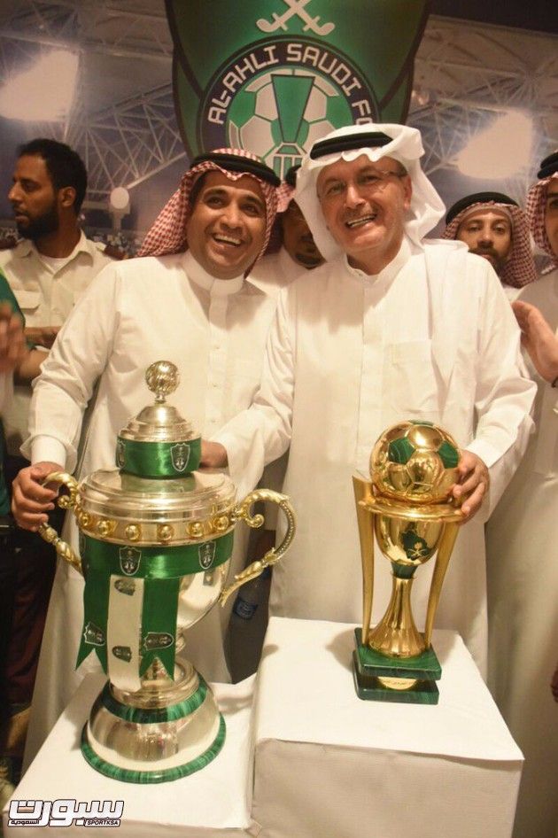 الاحمدي مع الرمز الاهلاوي وامامها كؤوس الذهب