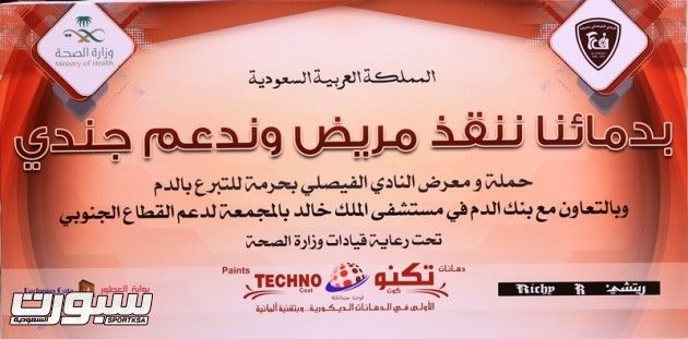 تنطلق مساء غداً الخميس حملة للتبرع بالدم تحت شعار ( بدمائنا ننقذ مريض وندعم جندي ) لدعم القطاع الجنوبي والتي ينظمها نادي الفيصلي بحرمة بالتعاون مع مستشفى الملك