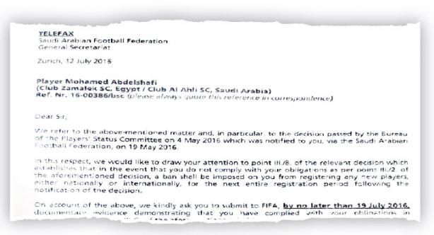 تلقى الاتحاد السعودي لكرة القدم أمس الأول خطابا من الاتحاد الدولي لكرة القدم "فيفا"