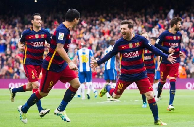 وقالت صحيفة "سبورت": "التحليق نحو لقب الليغا" مع صورة كبيرة للنجم ليونيل ميسي محتفلاً بهدفه في مرمى إسبانيول.