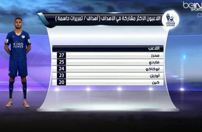 Almoj_alazra8@ رياض محرز هو اللاعب الأكثر مساهمة بالأهداف بـ 27 هدف في الدوري الإنجليزي هذا الموسم.